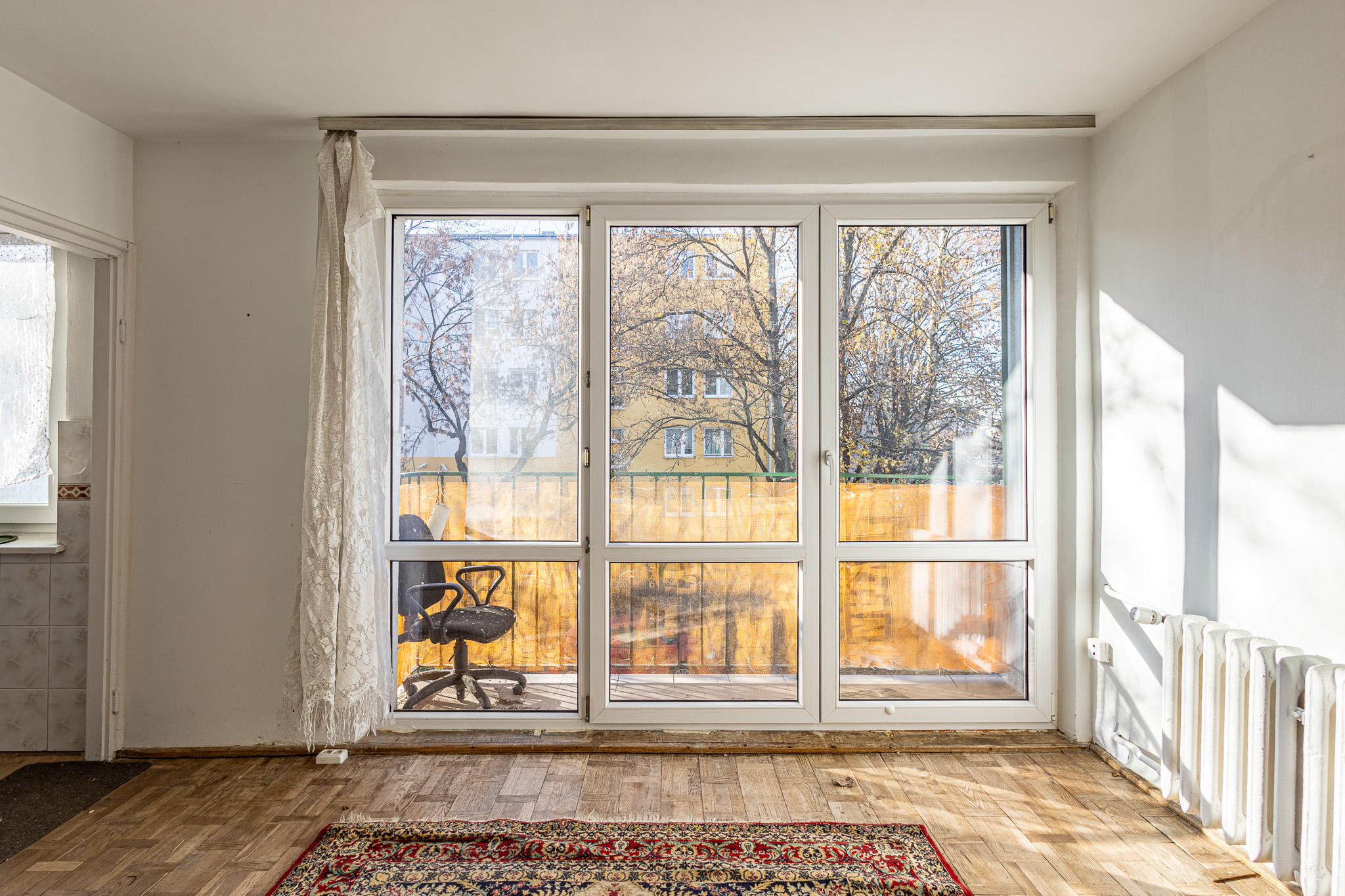 Były jednak w tym miejscu elementy, które mnie zauroczyły. W dwupokojowym mieszkaniu na pierwszym piętrze znajdowało się duże, jasne okno balkonowe, rozciągające się na prawie całą ścianę. Balkon, na którym można popijać poranną kawę. A także łazienka, która miała potencjał do powiększenia jej gabarytów.